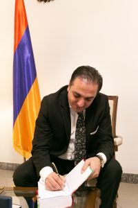 به مناسبت سیامین سال برقراری روابط دیپلماتیک بین جمهوری اسلامی ایران و جمهوری ارمنستان (بهمن ۱۳۷۰خ/ فوریة ۱۹۹۲م)، طی سال گذشته سلسلهبرنامهها و مراسمی در دو کشور اجرا شد. مراسم رونمایی از واژهنامة حقوقی، اقتصادی، نظامی و سیاسی یا به عبارتی فرهنگ دیپلماتیک (فارسی به ارمنی، ارمنی به فارسی) به کوشش و نگارش واهاگن آفیان، چاپ انتشارات بینالمللی حوزة مشق در زمرة این برنامهها بود که آن در ۲۸ آبان ۱۴۰۱خ در محل سفارت جمهوری ارمنستان در تهران برگزار شد.