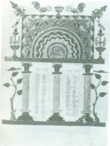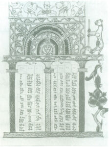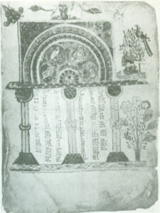 این مقایسه ها در ۶ الی ۱۲ صفحه جای می گیرند. این صفحات دارای تزئینات قاب مانند درگاهی با ستونهای متعدد هستند و تمام صفحه را در بر می گیرند. این تزئینات تا آخر سدۀ ۹ بصورت قوسهای مزیّن دیده می شوند (تصویر ۹ و۱۰) ولی بعد از آن، این قوسها در چهارچوبی مستطیل شکل و مزین جای داده می شوند (تصویر۱۱). محرابها، از نظر فضای وسیعی که برای تزئین داشتند، بیشتر مورد توجه نقاشان واقع شده اند. در آثاری که از نخستین دوران بجا مانده است، چه بر روی قوس محرابها، چه در تکیه گاه ستونها و سرستونها، نقوش گیاهان و جانوران گوناگونی دیده می شود. در دوران بعدی نقوشی از مناظر مختلف نمایشی و مراسم آئینی دیده می شوند.
