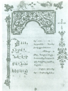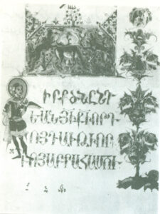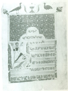 در تاریخ هزار سالۀ هنر مصورسازی کتب خطی ارمنیان، مینیاتورسازی کیلیکیه مقام ویژه ای دارد. این مکتب در سدۀ ۱۲ میلادی در ارمنستان کیلیکیه شکل گرفته و تا اواخر سدۀ ۱۴ میلادی وجود داشته است. این دوره از تاریخ ارمنیان زمان پیشرفت زندگی ملی ــفرهنگی محسوب میگردد. شاهد این مدعا آثار گرانبهای کتب خطی باقی مانده است. ارمنیان ضمن کوچ به طرف نواحی شرقی امپراتوری بیزانس متون خطی بسیاری را به آنجا بردند که بعدها به عنوان نمونه و سرمشق بکار گرفته شدند. به علت وقایع تاریخی ـــ سیاسی، دولت ارمنی کیلیکیه همواره با فرهنگ و هنر ملل همسایه در ارتباط بوده و این امر نقش مهمی در تکامل هنر مینیاتورسازی کیلیکیه داشته است. براساس سنن غنی ملی ـــ فرهنگی و آمیختن آن با شگردهای هنری ملل همسایه (بخصوص امپراتوری بیزانس)، درکیلیکیه شیوۀ مخصوصی از هنر مصورسازی کتب بوجود آمد که دارای ترکیبات رنگی غنی و اشکال ظریف و زنده بود. محرابهای پرنقش و نگار این مکتب از حالات معماری گونۀ قبلی خارج شده و طرحهای تزئینی سرلوحهها متعادل تر گشته است (تصویر۲۳).