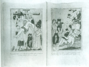 در بررسی سیر تحولات مینیاتور ارمنی، نام مکاتب گوناگونی را مشاهده می کنیم از قبیل مکتب مینیاتوری هایک بزرگ[۴]، گلادزور [۵] تاتو[۶]، کریمه، جلفای نو، قسطنطنیه و جز اینها. لیکن خصوصیات این مکاتب تلفیقی است از دو مکتب واسپوراکان و کیلیکیه و احتمالاً تأثیراتی که از نقاشیهای محلی گرفته شده است. پس از سدۀ ۱۷ میلادی اختلافات حاصل از تأثیرات محیطی مکاتب مختلف بتدریج از بین می رود. نسخه های خطی که در ارمنستان نوشته شده اند اغلب با همتای خود در کارگاه های سرزمینهای کوچ نشین دیگر، دارای تشابهات زیادی است. در این مرحله عناصر مشتق از مکتب های مینیاتوری ارمنی بخصوص کیلیکیه، همراه با عناصری که از هنر اروپای غربی گرفته شده است دیده می شود[۷] با این اختلاف که هنر مکتب کیلیکیه هم در عناصر و جزئیات تصویر و هم در شیوۀ اجرایی آن مؤثر بوده است ولی تأثیر هنر اروپایی بیشتر در مضمون و محتوای تصاویر مشهود است (تصویر۱۷).