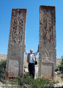 «در پایان ماه ژوئیه به منطقه آرجیش رسیدیم و در روز سیام ماه، راهی روستای برداغ(۱۵)شدیم که اکنون دینلنجه نام دارد و زادگاه جدم بوده. من میخواستم حتماً در آن روز در آن روستا باشم، چون روز تولدم بود. پس از ورود به روستا، جلوی مغازهای که گروهی از کردها جلوی آن گرد آمده بودند، توقف و از آنها درباره آثار بهجا مانده از ارمنیان سؤال کردیم. آنها گفتند که فقط یک نفر در روستا میتواند ما را راهنمایی کند. یکی از آنها رفت و آن فرد را، که مردی میانسال بود، همراه خود نزد ما آورد. ظاهراً، آن فرد چیزهای زیادی درباره ارمنیان روستا میدانست. بنابراین، از این فرصت استفاده کردم و مشخصات والدین جدم را به او گفتم به امید اینکه شاید اطلاعاتی درباره آنها داشته باشد. مرد کُرد از ما خواست دنبال او برویم. پس از گذشتن از چندین خانه و باغ، مقابل زمینی که صاحب آن ایستاده بود و با تعجب ما را نگاه میکرد ایستادیم. پیرمرد به من گفت که این ملک متعلق به پدرانت است. صاحب ملک، که در سکوت صحبتهای ما را میشنید ناگهان به سمت خانه دوید و به فاصله اندکی، تعدادی زن و دختر، که در دستشان قالیچه و متکا و خوراکی داشتند، از منزل خارج شدند و در همان زمین پدری، از ما با چای و خوراکی پذیرایی کردند. در بین صحبتهایمان مشخص شد که صاحبان قبلی این زمین در روستای کناری، با نام پانیک، زندگی میکنند. فکر اینکه آنها میتوانند خویشاوندان من باشند مرا آرام نمیگذاشت اما روز بعد مجبور به ترک آن منطقه شدیم زیرا صاحب هتل به ما اطلاع داد که مأموران امنیتی ترکیه به آنجا آمدهاند و ما را تحت نظر گرفتهاند و ممکن است دستگیرمان کنند. چند روز بعد، یکی از مسئولان هتلی که در آرجیش در آنجا اقامت داشتیم به ما اطلاع دادکه دو نفر از روستای پانیک برای دیدن ما به هتل آمده و شماره تلفن دادهاند. من با آنها تماس گرفتم و معلوم شد که آنها از بازماندگان اقوام پدریام هستند. باید، دوباره به آرجیش برمیگشتم اما خطرناک بود. بنابراین، این کار را به فرصتی دیگر موکول کردم. در ماه اوت سال بعد، دوباره به ترکیه رفتیم. با خویشاوندانم تماس گرفتم. نزدیک شهر مرادیه، به استقبال ما آمدند. پیرمردی نودساله جلو آمد و من را در آغوش گرفت. موفق شده بودم خویشاوندانم را پیدا کنم. هرچند آنها ارمنی بودند اما زبان مادری خود را فراموش کرده بودند و به کردی صحبت میکردند. به منزلشان رفتیم و چند روزی مهمان آنها بودیم. صحبتهای طولانی با هم داشتیم. مشخص شد که خویشاوندانم در آن منطقه پراکنده شدهاند اما با اینکه به اجبار تغییر دین و زبان دادهاند اصلیت خود را حفظ کردهاند. از آن روز به بعد ارتباط بین ما برقرار شد».