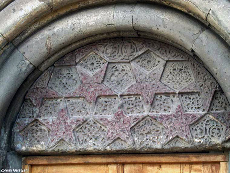 بنـا به تفـسیر بسیـاری از محققان معماری ارمنی، تزیین ورودی های اصلی بناها با استفاده از سنگ های ستاره شکل در معماری قرون دوازدهم و سیزدهم میلادی ارمنستان متداول بوده است. سردرهای بسیاری از این دوره به دست آمده است که با سنگ های ستاره شکل یا مربع شکل تزیین شده اند. [۲۴] در واقـع، قصر بارون هیـچ ارتباطی با دورۀ سلجوقی نداشته و در دورۀ حکومت زاکاریان ها بنا شده است. در سردر بسیـاری از کـلیـساهای قـرون دوازدهــم و سیـزدهــم میـلادی همچون ساقموساوانک،[۲۵] نـورواراگـاوانـک،[۲۶] هـاریجاوانـک[۲۷] و مشکـاوانـک[۲۸] نیـز از ایـن نـوع تزیینات استفاده شده است.