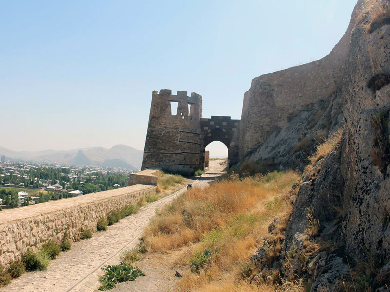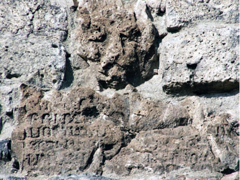 بر روی باقی ماندۀ یکی از برج های حصار شهر، کتیبه ای وجود دارد که در ۱۸۹۰م صدمه دیده است. این کتیبه، مرمت دیوارهای شهر توسط ارمنیان را گواهی می کند. بر روی برج ششم در سمت شمال شرقی قلعه، کتیبه ای به زبان ارمنی مربوط به ۱۱۸۴م، به شرح زیر قرار دارد: