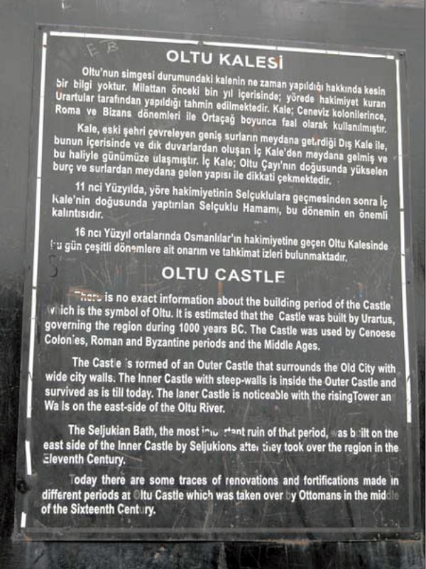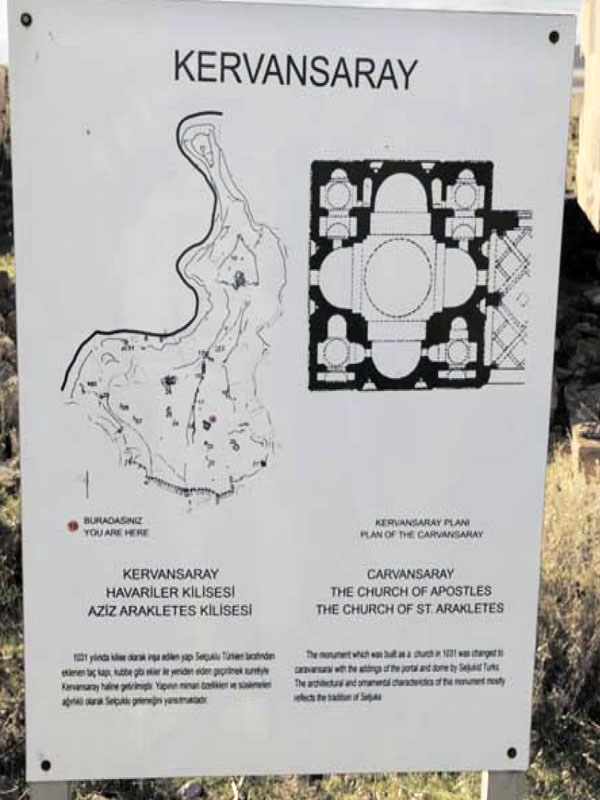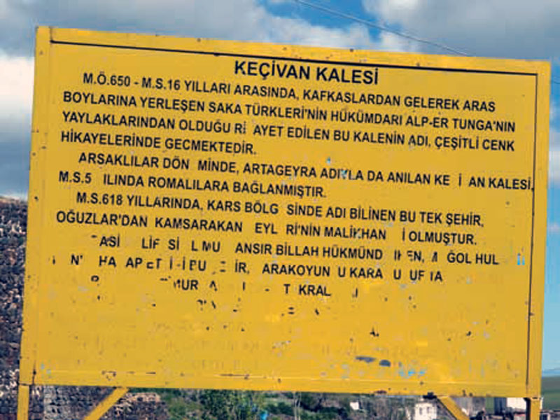 اطلاعات قسمت ابتدایی تابلوی راهنما کاملاً نادرست است؛ زیرا اقوام سکا (سیت)، که در استپ های آسیای میانه سکونت داشتند، هیچ گاه به داخل فلات ارمنستان نفوذ نکرده اند. در فرهنگ نامۀ لغات زبان ترکی نیز در خصوص این قوم (سیت ها) چنین نوشته شده است:
