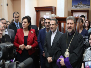 مراسم افتتاحیه با حضور هرانوش هاکوپیان، وزیر دیاسپورای ارمنستان؛ محمد رئیسی، سفیر جمهوری اسلامی ایران در ایروان؛ اسقف بابگن چاریان،خلیفۀ ارمنیان اصفهان؛ مسئولان و اعضای خلیفه گری اصفهان؛ دست اندرکاران و اعضای فرهنگستان علوم و تحقیقات ارمنستان؛ کارشناسان امور فرهنگی ایرانیان؛ و ایرانیان مقیم ارمنستان برگزار شد.