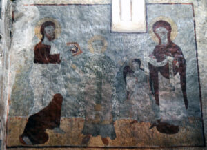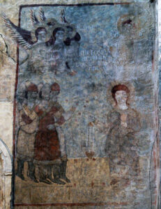 نقاشی روی دیوار جنوبی، نیکلاس معجزهگر(۹۳)را در حالی نشان میدهد که حضرت مسیح کتاب مقدس و حضرت مریم حماییل اسقفی را به او میدهند. بر روی دیوار شمالی، دو موضوع مختلف نقاشی شده. در بالا، تولد حضرت مسیح را میبینیم و در پایین، تصویر استپانوس مقدس(۹۴) در حال سنگسار شدن به تصویر کشیده شده.(۹۵)