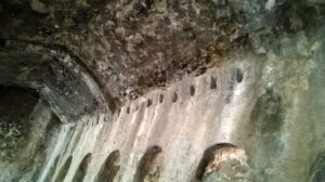 در کاوشهای محراب، حفرهای یافت شد که از داخل آن تعدادی استخوان انسانی، ۳۸ قطعه چوبی و ۱۳میخ فلزی به دست آمد. در بررسیها مشخص شد که چوبها متعلق به یک صنـدلی تخت مانند است. از مـه ۲۰۰۸م خاکبرداری از قسمت حفـره شروع و اتاقکی بهشکل چهارضلعی متمایل به بیضی با ابعاد ۷۲ در ۱۰۷ سانتیمتر و ارتفاع ۱۳۲ سانتیمتر یافت شد. در کف اتاق تعداد بیشتری استخوان انسانی و همچنین، سر یک عصا را پیدا کردند که شبیه عصاهای اسقفی است.بـررسـیهـای آزمـایـشگاهـی نشـان داد کـه استخـوانها متعلـق به مـردی ۵۰ تا ۵۵ سالـه با قـد ۱۷۵تا۱۸۰ سانتیمـتر اسـت که به صورت نشسته بر روی تخت و رو به سمت شرق با عصایی در دست چپ داخـل دخمه دفن شده است. لازم به توضیح است تا سده نوزدهم میلادی در منطقه شمال میانرودان و جنوب فلات ارمنستـان بعضی از روحانیان مسیحی را که پیروانی داشتند به این شیوه خاکسپاری میکردند. ظاهراً، این شیوه در سده سیزدهم میلادی در منطقه خاچن نیز به کار گرفته شده است.(۶۸)