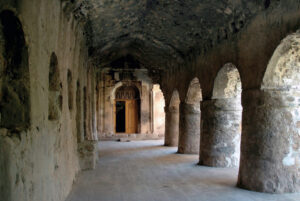 بررسـیها نشان مـیدهد که ابعـاد بنا هنـگام بازسازی تغیـیر نکرده و دیوارهـای آن، که از سنگ نتراشیده ساخته شده، به همان صورت وضعیت اولیه حفظ شده است.(۹۹) تغییرات در داخل بـنا صورت گرفته. دیـوارهای داخـلی را با سنگ خـوشتراش پوشاندهاند و به جـای شش ستـون چـهار ستـون به کار رفته و سقـفی جدید و یک گنبد با سنگ خوشتراش ساختهاند. گنبد صحن گریگوریس منحصر بهفرد است زیرا چنین گنبدی در بناهایی با این سبک دیده نشده.(۱۰۰)