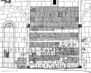 در بالای دیوار جنوبی آن کتیبه مفصلی وجود دارد که در آن آرزوخاتون در نوزده خط(۳۲) به معرفی خـودش پرداخته و درباره اتفاقاتـی که برای خانوادهاش پیـش آمده توضیـح داده است.(۳۳) او درباره کشتـه شدن فرزندش این طور نوشتـه: « … پسر ارشدم برای اعتقادات مسیـحیاش در جنگ با ترکان کشته شد …».(۳۴)