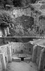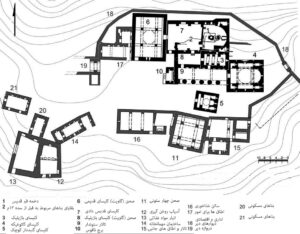 پس از برش تپه و مسطح کردن شیب جنوبی آن، سه ساختمان در این قسمت ساخته شده که کف آنها پایینتر از کف ساختمانهای داخل دیر است.