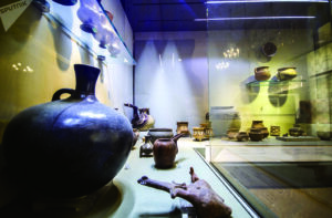 اتاق پذیرایی (سالن گاهنگاری) : این سالن محل کار و فعالیتهای علمی و پذیرایی از مهمانان بوده است. در حال حاضر، سعی شده که با بخشی از آثار و اشیای تاریخی مجموعه موزه مقدم توالی و تسلسلی از آثار تاریخی ایران در این سالن به نمایش گذارده شود که نشانگر فرهنگهای گوناگون در دورههای مختلف تاریخی است، آثاری چون سفالینهها، ابزارهای سنگی، مفرغینهها، شیشهها، مهرها، اشیا فلزی و … .