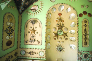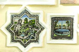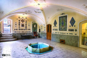 « این چهار دیوار مربوط به چهار دوره از تاریخ هنر ایران است. دیوار شمالی آن آثار هنری کاشی و نقاشی روی کاشی دوره قاجاریه را نشان میدهد. دیوار جنوبی کاشی و نقاشی دوره صفویه، دیوار شرقی آثار دوره مغول در قرن سیزدهم و چهاردهم میلادی و دیوار غربی آثار دوره تیموری است».(۵۵)