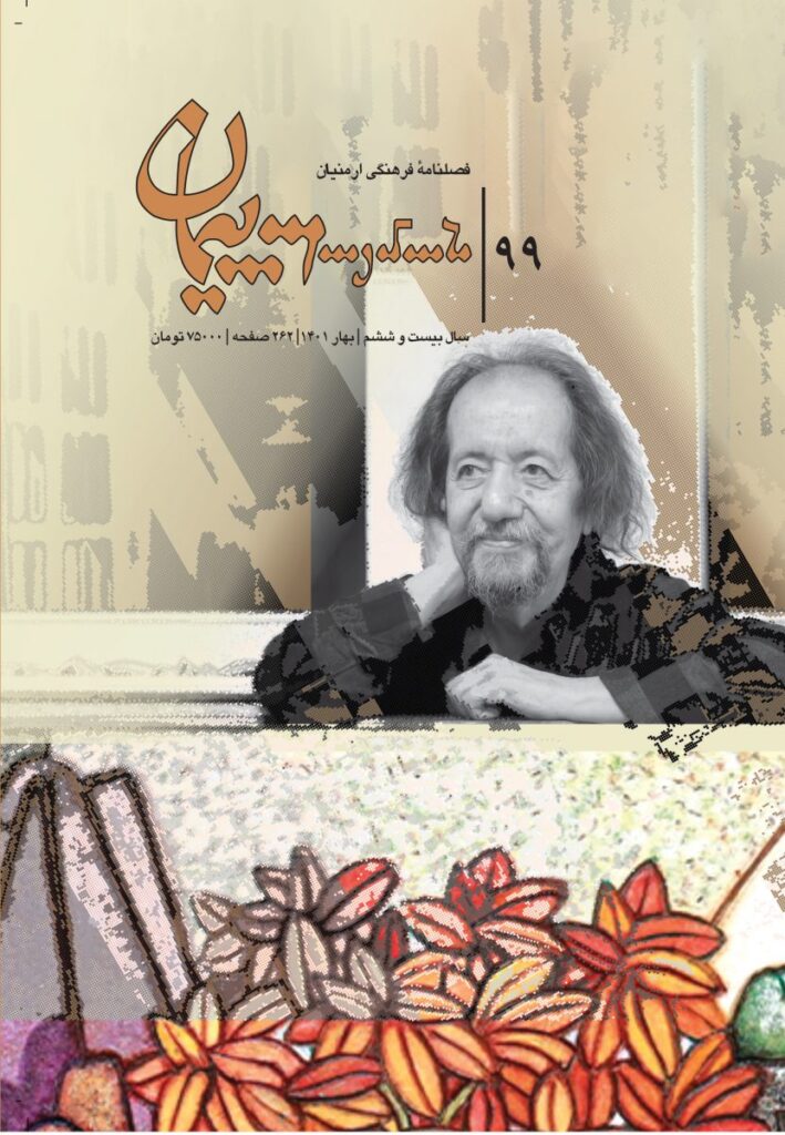 در شمارههاي گذشته، برخي از اين بازرگانان بدعتگذار و هنرمندان ارمني دوران صفويه و افشاريه و بنيانگذاران آثار هنري ماندگاري چون کليساي وانک جلفاي نو و نيز، پيشگامان نقاشي اصفهان به ويژه، استادان آبرنگ را معرفي کردهايم. در اين شماره، نيز به معرفي آن دسته از هنرمنداني خواهيم پرداخت که در حال حاضر در فضاي هنر ايران فعاليت دارند. گارنيک دِر هاکوپيان و سارو مگردچيان دو هنرمندي هستند که يکي با قلم مو و ديگري، با سمبه و اسکنه جلوهاي ديگر به گلستان هنر ايرانزمين افزودهاند. يکي از اين دو پيرو سبک نقرهکاري وان ارمنستان است و بر سطح سخت و سرد ورقهاي نقره نقش ميزند و ديگري، با نيمنگاهي به نقاشيخط، خالق نوگراي فضايي انحصاري و عاري از زشتي و دنيايي سحرآميز و تخيلي بر پهنة سفيد بوم است. «هنرحکاکي روي نقرة ارمنيان»؛ «حکاکي،هنر ثبت شخصيت و فرهنگ بر شيئي بيجان» ؛ «اصوات زندگي» ؛ «آزادي و نوآوري در خلق آثار هنري» ؛ «گارنيک، روايتگر ترکيببنديهاي موزون از نقاشي با خط» ؛ «گارنيک دِر هاکوپيان و مجموعة تصويرِ دوگانگي» ؛ «حضور هنرمند غايب» و «گارنيک دِر هاکوپيان، خالق آثاري با ترکيب زيبايي از تلفيق نمادهاي ارمني و ايراني» عناوين مقالههايي است که به اين دو هنرمند اختصاص دارد. «نگاهي به هنر و معماري کليساي مسروپ مقدس مشهد» عنوان مقالهاي به قلم يکي ديگر از همياران فارسيزبان پيمان است که شاهد خاموش حضور ارمنياني است که به دست افشاريان به خطة شمال شرق ايران کوچانده شدند. اين نوشتاريست تحقيقي و يادآور نمادي ديگر از در هم تنيدگي ادواري دو قوم کهن هلال حاصلخيز و فرهنگشان.