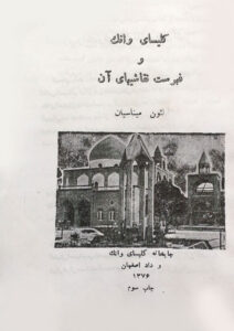 ۷. کلیسای وانک و فهرست نقاشی های آن(فارسی و ارمنی) (اصفهان:۱۳۷۱، ۱۳۷۴، ۱۳۷۶)