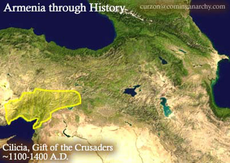 15ـ منطقهای که صلیبیون در اوایل قرن دوازدهم میلادی به پادشاهی ارمنستان اختصاص دادند و ارمنیان تا سه قرن در آن با آزادی کامل زیستند. این پادشاهی با حملۀ سلاطین مملوک مصر استقلال خود را از دست داد.