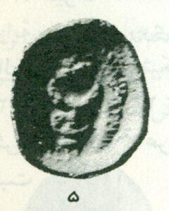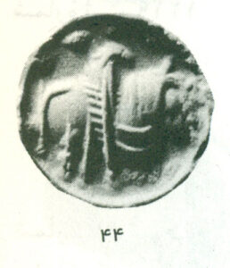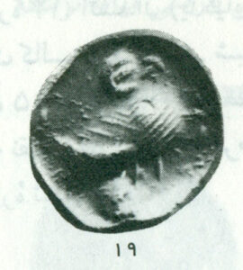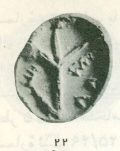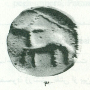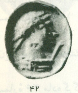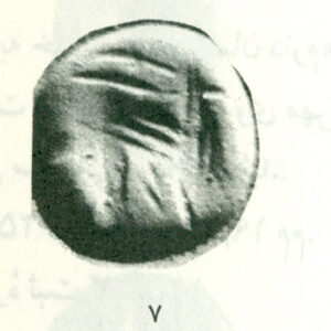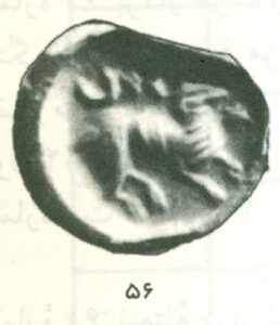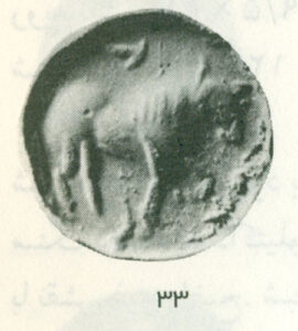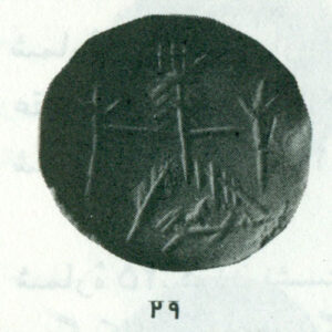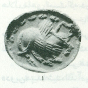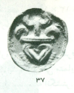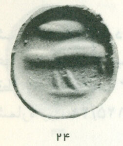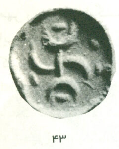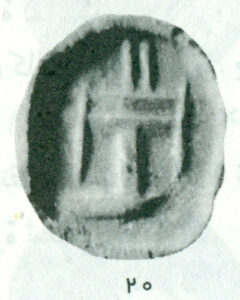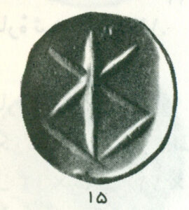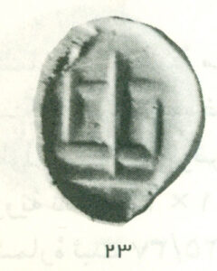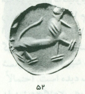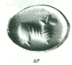 دارای نقش ستارۀ شش پر بر یک رویه و گوزن (؟) بر رویۀ دیگر.