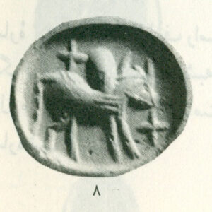 آ. کالانتریان (پس از A.Y. Borisov) بررسی کرده که این مهر دارای منشأ زرتشتی است و بعدها صاحب جدیدی یافته است که در قسمت خالی آن یک صلیب کوچک حک کرده است. به این ترتیب مضمون زرتشتی نقش از بین رفته است (ر.ک.: آ.ی. بوریسف).