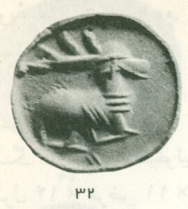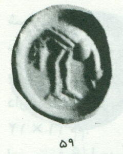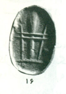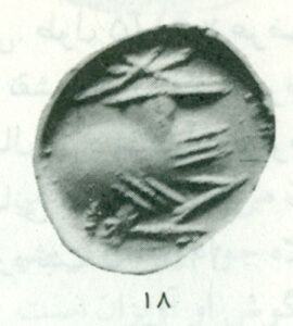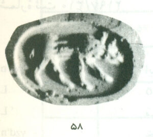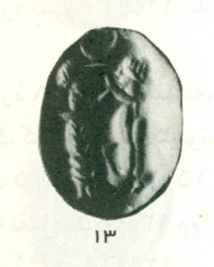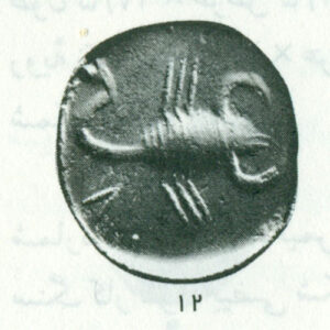 همچنین مقایسه کنید با Bivar، همانجا، ص ۱۰۵، تصویر ۲۴، KA1 (انگشتر نقرهئی با نقش عقرب)، KA4(انگشتر سنگی با نقش عقرب).