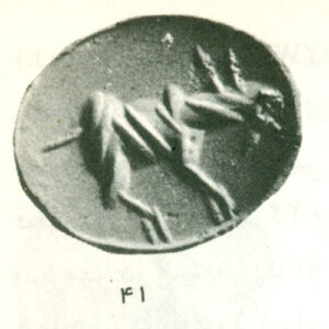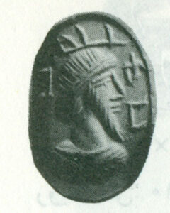 این مهر در سال ۱۹۵۵ در «دوین» پیدا شد. به احتمال زیاد به دورۀ ساسانی تعلق ندارد؛ گمان میرود تقلیدی از آثار دورۀ هلنیستی (بایستان) باشد.