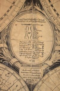 این نقشه، که به صورت دو نیمکره شرقی و غربی شامل قاره امریکا و هلند جدید (استرالیا ) طراحی شده، با تصاویر و تزیینات بسیار زیبا در چهارگوشه آن نقاشیهای اساطیری و تاریخی به طرز جالبی همراه با نقشههای نجومی و صورفلکی در بالای نقشه و همچنین، نقشههای دو قطب کره زمین در پایین آن تنظیم شده است.