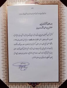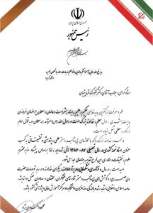 « انتخاب و معرفی آثار مکتوب مرتبط با صنعت برق در کنفرانس بینالمللی برق یکی از اقدامات مثبت و مؤثری است که در سنوات اخیر به طور مستمر عملی گردیده است. اهتمام جنابعالی در تألیف این کتاب حرکت ارزشمندی برای پویایی این صنعت بوده است. لذا، به پاس ارج نهادن به همت والای جنابعالی و کسب رتبه برتر در ارزیابی آثار مکتوب سی و سومین کنفرانس بینالمللی برق و هفتمین جشنواره انتخاب کتابهای برتر صنعت برق کشور این لوح تقدیر به جنابعالی تقدیم میشود. امید دارد در پرتو عنایات حضرت باری تعالی همواره موفق و مؤید باشید».