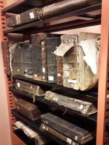 یکی از کاتبان در حاشیه نویسی (هیشاتاکاران) [۳۳] انتهایی نسخـه ای خطی، در ۱۶۶۸م، آورده اسـت کـه در زمان جاثلیـق فیلیپوس (۱۶۳۳ ـ ۱۶۵۵م) دیـر اجـمیادزین شـمار بسیـاری از نسخـه های خطی ارزشمنـد را نگهداری می کرد. همچـنین، تأکـیـد شـده اسـت کـه در زمـان جـاثلیقــی هاکـوپ جـوغایتسی[۳۴] (۱۶۵۵ـ۱۶۸۰م) کـوشش گستـرده ای برای گـردآوری نسخـه های خـطی صـورت گرفـت. متأسفانه، در اوایل سدۀ هجـدهم میـلادی بار دیگر ایـن مجـموعـه طی حملاتـی دچار آسیب جدی شد.