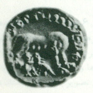 مُهر شگفتانگیز دیگری در این گروه به چشم میخورد که در آن گرگی در حال شیر دادن به بچۀ خود و یک کودک است. مفهوم این نقش را باید در افسانههای کهن جستجو کرد. این مُهر از سوئی انسان را به یاد بنیانگذاران افسانهئی شهر رُم یعنی روموس و رومولوس میاندازد که توسط ماده گرگی پرورش یافتند و با شیر او بزرگ شدند. در حاشیۀ مهر به خط پهلوی ساسانی نام صاحب مُهر «مارشید هرمزد» نقر گردیده است (تصویر شمارۀ ۲).