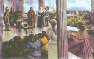 به مناسبت هزاروهفتصدمین سال پذیرش مسیحیت در ارمنستان به استاد لئونی تاشچیان پیشنهاد شد تا تاریخ ارمنستان را به روایت تابلوهای نقاشی تصویر کند. ایشان با کمال میل این مسئولیت را پذیرفته و این مجموعه را آماده نموده اند.استاد برای شناخت بیش تر منابع تصویری تاریخ ارمنستان دست به مطالعات وسیعی زدند و با توجه به این مطالعات سعی نمودند تا ساخت و سازهای صحنه های تاریخی و نیز پوشاک شخصیت های این مجموعه از آثار خود را، با دوران تاریخی مورد بحث حتی الامکان نزدیک کنند. ترکیب بندی و تونالیته های رنگ ها نیز متأثر از رنگ های آثار تاریخی ارمنیان است. به طور کلی موضوع این تابلوها مربوط به سده های سوم الی ششم قبل از میلاد مسیح است.