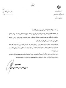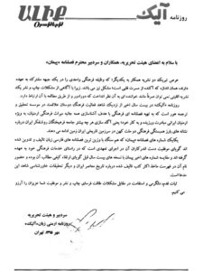 به هیئت انتشار فصلنامۀ پیمان،[۲]