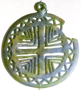 صلیب همواره به منزلۀ یک نقش مایۀ مجرد به صورت تکراری (در اشکال مختلف) در اشیای آیینی هیتیتی و اورارتویی (تصاویر۲۳٬۲۲و۲۴)، بر روی لباس پادشاهان خداگونه هیتیتی و همچنین در دوران اولیۀ اورارتو، با تکرار بی نهایت، در سطوح و سپس بر سازه های فریجی، به خصوص یادبود تاریخی میداس سحری[۴۳] (تصویر۲۶)و بعد از آن به صورت تزیینات معرق چوبی، در گوردیون (تصویر۲۷)، به کار رفته است.