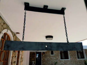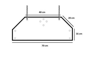 همان طور که در تصویر مشاهده میکنید در قسمت بالا سه سوراخ برای آویزان کردن آن با زنجیر تعبیه شده است.