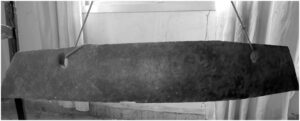 کوچناک فلزی : همان طور که در تصویر میبیند بدنه کوچناک دارای خمیدگی جزئی است و همچنین، در یک سانتیمتری لبه بالا سه سوراخ برای آویزان کردن آن با زنجیر در نظر گرفته شده است. در وسط این کوچناک، نقش صلیب و یک کتیبه وجود دارد که، به دلیل ضرباتی که به مرور زمان وارد شده، متن آن تقریباً ناخواناست. تنها بخش باقی مانده از متن چنین است : «مجدداً، ساخته شد به یاد ضارب … ». ابعاد این کوچناک به شرح زیر است :